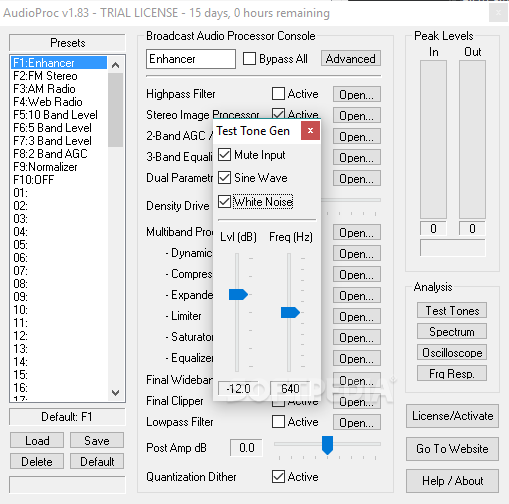 AudioProc is a Winamp DSP plug-in that was developed to provide people with a high-quality multiband audio dynamics processor, which utilizes the same multiband compression/expansion/limiting technology which professional broadcasting hardware is based upon.