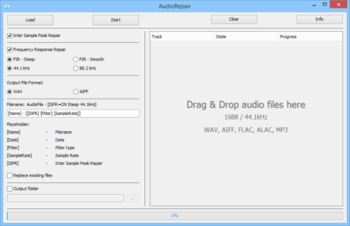 The so-called Inter Sample Peaks are caused by faulty signal limiting during recording or intentional loud mastering. Some statistics state that around 80% of todays CD recordings show Inter Sample Peaks.A digital signal cannot exceed 0dB Full Scale but the analog signal, re-constructed out of the digital domain, is able to reach levels of +3dB, overloading heavily the Digital to Analog Converters (DACs) and therefore creating audible distortions.The AudioRepair tool is able to fix the Inter Sample Peaks by doing a 32 times up-sampling with a target sampling frequency of 1.4112MHz to simulate an analog signal for an accurate audio processing.The repair process adjusts the audio track level in a way that the resulting analog signal does not exceed 0dB to stay in the specification limits of modern DACs.