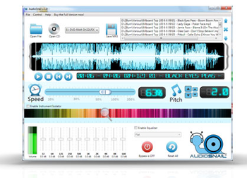 AudioSnail™ alters the playback speed of music (or other audio) without any change in pitch, in studio-quality. This makes it a powerful learning tool for all musicians. Slow down even the fastest riffs, learn to play any recorded solo, pick out chords and other parts. Absorb the phrasing and style of your favorite artists at your own pace. Key Features Adjust Tempo without affecting the Pitch Studio-quality slowdown results with incredible sonic clarity and fidelity. Adjust the tempo from 20% to 200% of the original speed. Slow enough to learn them note by note or hear fingering subtleties. Adjust the Pitch without affecting the Tempo Sing or Play comfortably: Adjust song's pitch (musical key) on the fly, to match your vocal range or playing key. Is your favorite songs slightly off in pitch? No problem! Now you can micro-tune any song with great accuracy, in 1/100th of semitone steps. Create Loops Create and save any number of slowed down loops per track so you can repeatedly practice only the part of the song you are interested in. Instrument Isolator Allows you to emphasize the sound of a particular musical instrument, so you can hear and focus on the melody you are interested in (e.g. a guitar solo) much easier. Graphic Equalizer 10 band graphic equalizer. Improve the fidelity of sound, emphasize certain instruments, remove undesired noises, or create completely new and different timbres. Multiple audio formats Audio formats supported: mp3, wav, wma, wmv, flac, aac, cda. Direct playback from audio CD is also supported. MP3 Export Save your song in slow tempo as a regular MP3 file, so you can practice anywhere using your favorite mp3 player without the need of a computer.