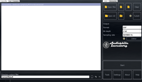 Audiophile converter for high resolution music files DSF, DFF, ISO, WAV, AIFF, FLAC, ALAC, mp3, WMA. Builtin CD-ripper and DSF tag editor. For using with home hifi/hi-end systems, car audio, mobile devices. Intended for audio enthusiasts with different level of experience and for music production. Key technical features: 1. Converting ISO/DFF/DSF/WAV/AIFF/FLAC/CUE+FILE to DSF/WAV/AIFF/FLAC/ 2. True Gapless Conversion for avoiding clicks/gaps/bursts. All albums tracks processed as solid audio stream. 3. Multichannel files supported 4. Adjusting loudness converted file (including DSF). Key using features: 1. Providing hi-end quality near theoretical limits via own algorithms 2. Simple and friendly user interface 3. Ready work with best quality "from box" Specification 1. Encoding/decoding DSF 1-bit, D64/128/256/512 (2.8/5.6/11.2/22.5 MHz) 1-bit (DSF) audio processing without intermediate PCM conversion. 2. Encoding/decoding PCM 16/24/32*/64* bit - 44/48/352/384 kHz * - integer and float point 3. Auto obtaining meta data from Internet during CD ripping 4. Accurate sample rate conversion algorithm AuIs alphaC. 5. Adaptive gentle dithering algorithm AuIs alphaD. 6. Low noise/distortions algorithm sigma-delta modulation AuIs alphaS. 7. Precise True Gapless Conversion algorithm own AuIs trueG.
