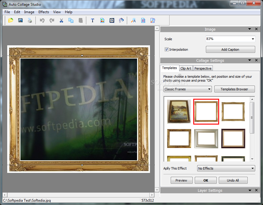 Basically, Auto Collage Studio can use any image you want and place it inside various templates. The program includes various types of frames that are stored under several categories, such as “Classic Framesâ€, “Monitors & TVâ€, “Cityâ€, “Cardsâ€, “Misc†and “Modern Styleâ€.