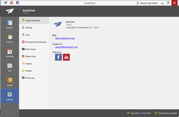 AutoPost can display a log of all the messages that were posted according to the recurring plan and the schedule. The Report tab displays the follow-up of all the schedules you created, regardless if they generated any auto posts or not. The History is where you may view a list of all the posts published according to the pre-set plans. Each scheduled post can quickly be edited, delayed or duplicated. You may easily change the posts start date and priority or remove them from the list. AutoPost requires that your PC is constantly connected to the Internet so that it can successfully post the messages. Moreover, it cannot keep to the schedule if the computer is turned off. Therefore, if the recurring schedule is set to a few minutes or hours, you need to keep your computer on or at least in sleep mode.