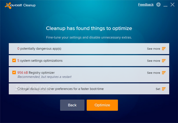 OPTIMIZE: In the trial and paid versions of Cleanup, you can tweak the system settings and boot-up options to minimize your computer’s start time. We can also help you get rid of unused applications and clean your registry.