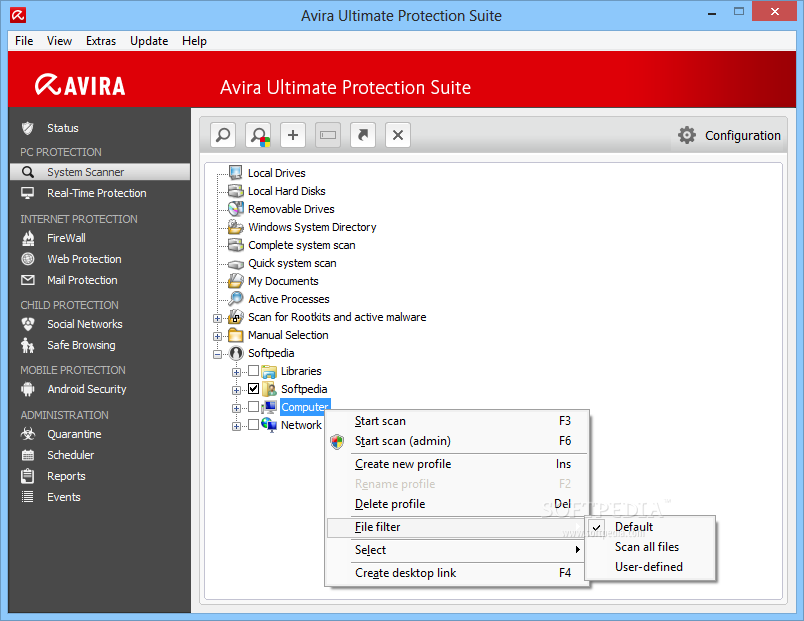 Avira Ultimate Protection Suite is the most comprehensive security solution delivered by Avira, bundling a collection of tools that can secure your PC and other devices. As mentioned above, its most important features are real-time protection and on-demand scanning, alongside Internet security, safe shopping, mailbox and network security options.