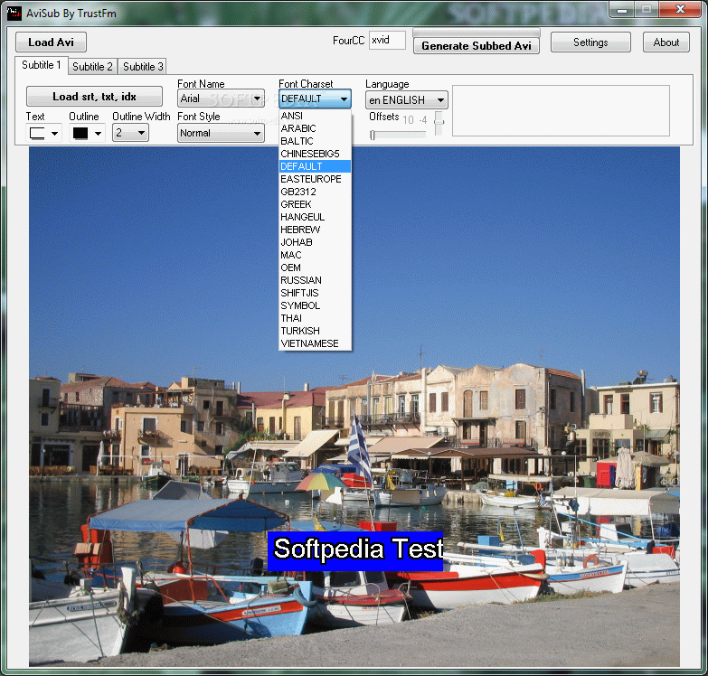 In addition, the interface of the application is compact and simple, easy to understand and navigate through. Usage is not complicated either – select the AVI file of interest and the adjacent subtitle (in SRT, TXT or IDX format), after which you can adjust font settings (charset, outline, style and size) and the language.