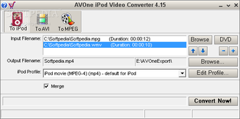 Convert AVI to MPEG format file AVOne iPod Video Converter is not only an avi to iPod converter but can convert avi file to MPEG1 or MPEG2 file.