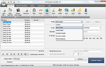 Convert audio files between MP3, WMA, WAV, OGG, AAC, M4A, M4R, AMR, APE, FLAC and other well-known audio formats. Export and convert audio from video. Apply advanced fine tuning. Make a ringtone for iPhone. Use Batch mode to reduce conversion time.