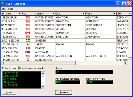 AWIPLOC allows you to resolve IPs to Country, City, Region and ISP by providing instant access to our 1400 MB online databases with more than 7.9 million IP ranges.