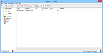 The column on the left of AWGG’s interface allows you to quickly switch between the queues or filter the entries based on their status: complete, in progress, stopped, error or paused. The list of downloads can easily be exported to a text file.