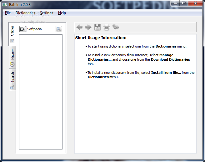 Babiloo is a handy, easy to use application developed to read offline dictionaries. If you need a dictionary, you wont necessarily have to be online to search for the desired word.