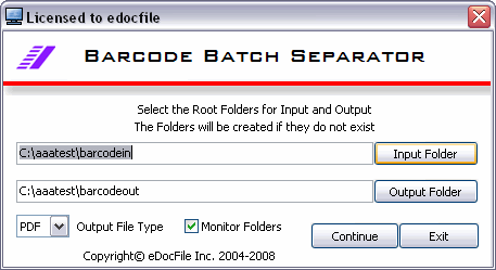 Barcode Batch Separator is a demo software by Edocfile Inc. and works on Windows 10, Windows 8.1, Windows 8, Windows 7, Windows 2012.