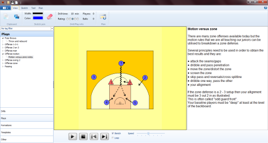 Plays and drills that will make up a practice plan can be created with an easy to use sketch tool.