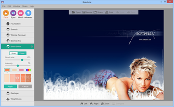 Editing is incredibly easy and intuitive, even if you ignore the small tutorials. All tools are based on a similar method, with a few sliders letting you handle brush size and intensity, with real time previews. Each time you access a new brush type, you're asked to apply previous changes so you can undo step by step in case of any major mistakes. There's also a button to bring up the original for comparison.