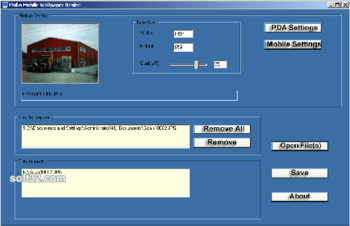 Resizes picture to be used on cell phones PDA. Build yourself your own wallpaper using your pictures taken with digital camera. is an easy to use program that resize pictures and optimizes pictures and images to make them more suitable for email and web use. It provides a simple user interface that allows you to scale down the size of images, making them faster to upload, download and e-mail and not in the last using on your mobile device.