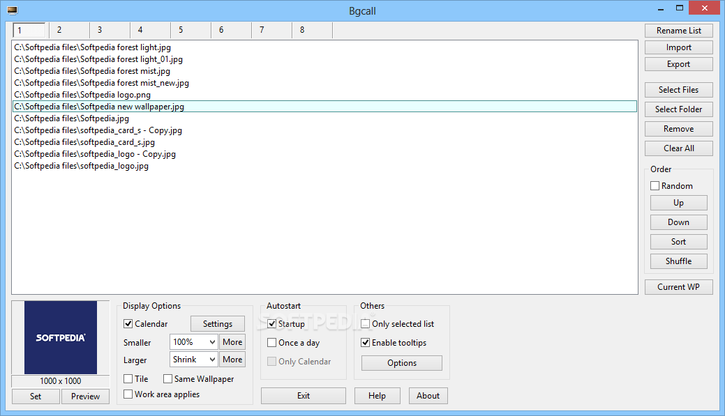 Bgcall is a handy application for changing wallpapers even on multiple monitors. It lets you manage and create lists of your favorite pictures, so you won't be surprised when a certain image will show up. In case you easily get tired of your background picture, give this little utility a try.