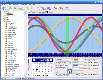 BioWIN is an advanced biorhythms charting application. BioWIN provides means to analyze, chart and print primary, secondary biorhythm and I-Ching cycles.
