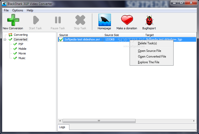 Blackshark free 3gp video converter is a powerful free 3GP video converter, can easily convert AVI to 3GP, MPEG to 3GP; convert FLV, MP4, MOV, ASF, VOB, DV, WMV to 3GP.