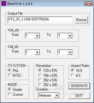 BlankVOB is a small, simple and easy-to-use program designed to create a Blank Vob, in simple or custom mode.