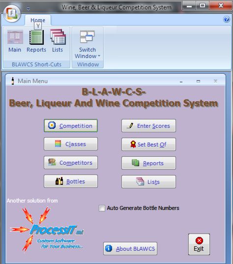 BLAWCS has now been superseded by the new application "RESULTS"RESULTS is even better and more flexible. The Beer, Liqueur And Wine Competition System was the perfect solution for all Shows and Competitions, whether Professional or Amateur, International, National, Regional, or Local. Use the Beer, Wine And Liqueur Competition System to track and manage your whole Show. Record all Entry Classes. Add Entrants and their Entries, Produce Judging Sheets, Record Blind Results and automatically calculate awards and prizes. This Package will eliminate the mass of Spreadsheets and Documents that normally are associated with competitions. All your competition information is Centrally located and available through your local network, simultaneously to multiple users.
