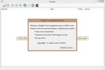 BlogBot is a tool application that lets you download and backup all images from your Tumblr and Instagram blogs with just a few clicks. Here are some of the program features: Download all photos from specific Tumblr and Instagram blogs. Tumblr photosets are supported with no extra settings. Automatically filter out Tumblrs placeholder images for removed blog images. If there are more than one image resolution available, BlogBot will always download the highest quality. BlogBot will find and download all images - not just some of them like some of the other popular backup programs do. Only new photos will be detected and downloaded. When you add a blog, you can choose if you want to download all the previous images or only new ones. Once an image is downloaded, you can safely move it, rename it or delete it, and it will have no affect on program functionality.
