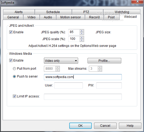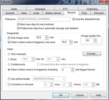 Use up to 64 cameras (webcams, camcorders, network IP cams, analog cards, or your PC desktop). Capture JPEG snapshots or capture movies in standard AVI, advanced DVR, or leading-edge Windows Media file formats.