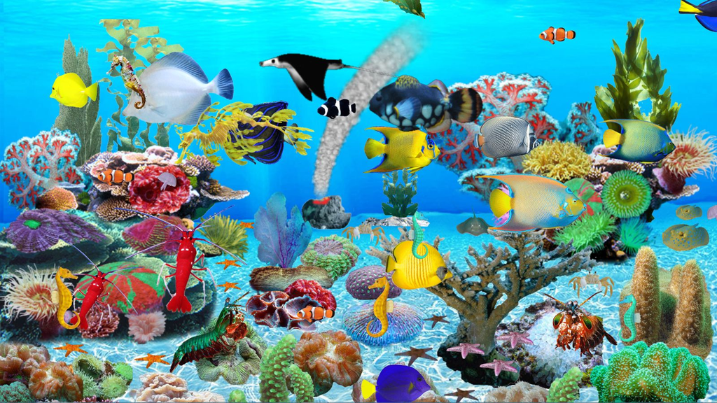The Blue Ocean Aquarium animated desktop wallpaper will turns your monitor from old fashion still image background into a deep blue mesmerizing and breathtaking ocean full of sea creatures swimming around including Butterfly fish, Dolphins, Jelly fish, Sea Turtle, Orca, Stingray, Star Fish, Sea Clams and many other marine aquatic species of fish and vertebrates. Diving into the ocean's depth with living 3D Dolphins and Orca with deep blue crystal clear ocean and beautiful coral seascape and plants is a perfect setting to calm and relaxing your nerve. Unlike, traditional screensavers which only runs when your computer is idle so you are not there to enjoy the beauty; but with the animated wallpaper you just keep working and enjoy the beautiful fish swing around behind your desktop icons.