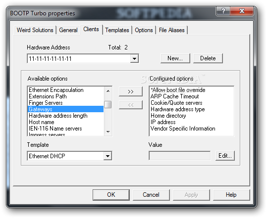 The program is designed to help you by using templates for configuring similar client connections. It supports both BOOTP and DHCP clients.System requirementsx86 Intel or compatible CPU