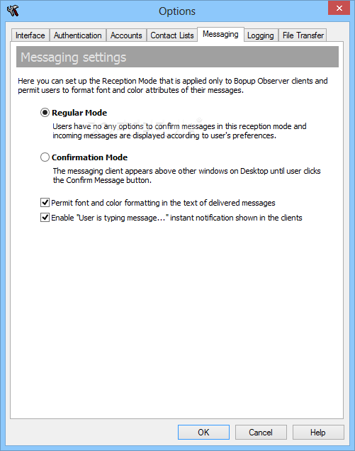 Both the server console and the IM client are easy-to-use and fast. They are accompanied by a Bopup Oserver, which keeps track of received messages, and by a Setup.ini Configuration Tool that allows admins to define the same set of settings for all IM clients they want to deploy.