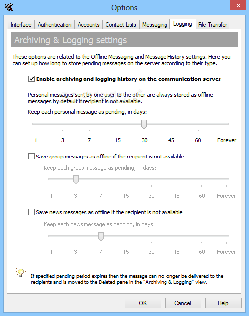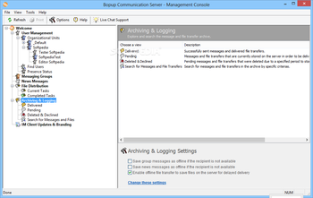 The server dashboard allows system administrators to manage the settings of IM clients from a single interface. Moreover, they can update all clients from the same tool, and can restrict user access to the communication system's important settings.