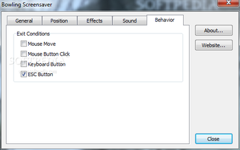 Bowling Screensaver can be easily customized, so you can determine its position on screen, pick the time interval for the images to be displayed and choose from a variety of effects.