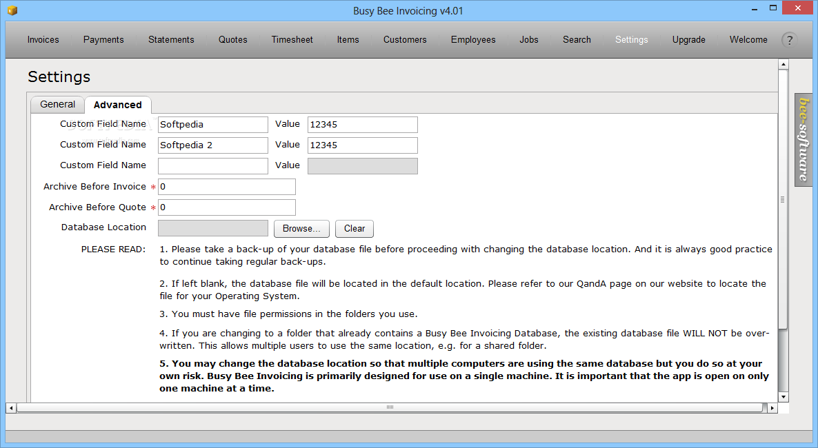 Busy Bee Invoicing is a demo software by Bee-Software and works on Windows 10, Windows 8.1, Windows 8, Windows 7, Windows XP, Windows 2000, Windows 2003, Windows 2008, Windows Vista, Windows 2012.