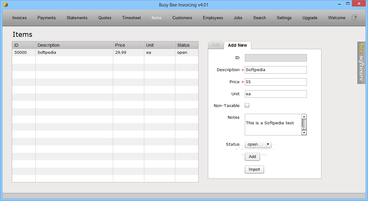 You can download Busy Bee Invoicing which is 1.69 MB in size and belongs to the software category Finances and Business. Busy Bee Invoicing was released on 2015-05-03 and last updated on our database on 2017-04-05 and is currently at version 4.04.