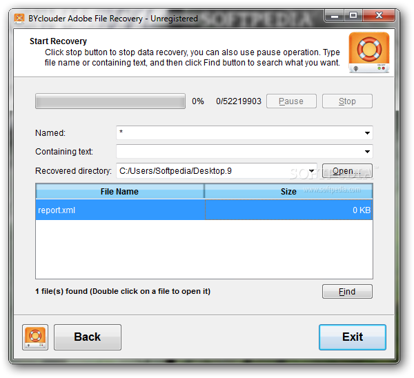 BYclouder Adobe File Recovery uses a wizard-like interface which make everything pretty easy to configure and use.Limitations in the unregistered versionRegistration dialog will be displayed when several files are recovered