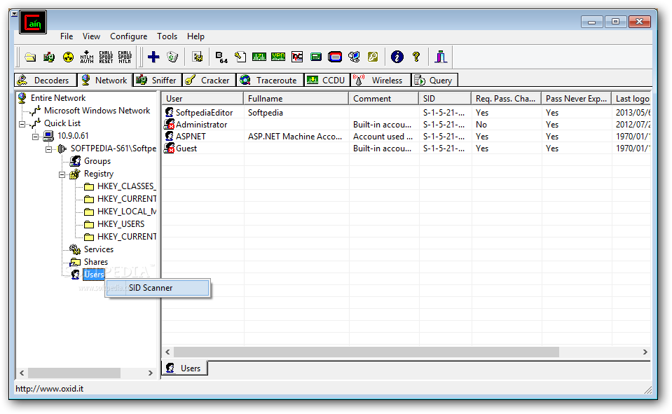 Most encrypted passwords are breakable using this program via Dictionary, Brute-Force and Cryptanalysis attacks. Decrypting scrambled passwords or wireless network keys is not a challenge either. Besides the ability to record VoIP conversations, the application also features the possibility to analyze route protocols.