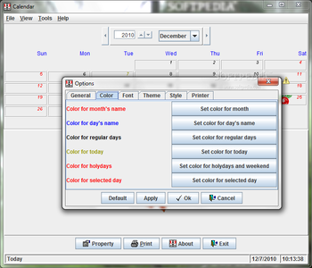 Calendar is a handy, small, Java based tool specially designed to help you manage your days easily. You can update view, colors and fonts. (to do it click on button property).