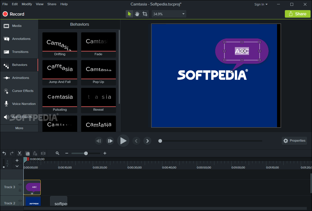 Camtasia empowers you to make amazing videos--even if youve never made one before. Record a video of your screen or bring in your own video footage. Then, use Camtasias drag-and-drop editor to easily create remarkable videos you can share with anyone. Keep your audience engaged by adding eye-catching animations, music, and captions in record time. With Camtasia, youll be able to produce stunning videos without being a professional video editor.