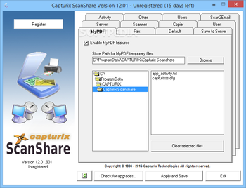 You can download Capturix ScanShare which is 26.9 MB in size and belongs to the software category Other Office Tools. Capturix ScanShare was released on 2016-01-30 and last updated on our database on 2017-04-12 and is currently at version 12.01.
