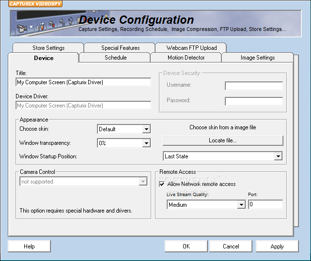 You can download Capturix VideoSpy which is 15.32 MB in size and belongs to the software category WebCam. Capturix VideoSpy was released on 2011-04-30 and last updated on our database on 2017-03-01 and is currently at version 8.04.