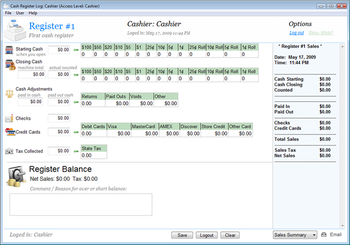 Keep track of credit cards, checks and money in the cash drawer. The program will calculate your net sales even if you use multiple cash registers in your store.