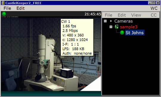 Tired of having to download and install yet another activeX/browser plug-in to view a network/IP camera? No more. Not with CastleKeeper2 FREE. CastleKeeper2 FREE is a real Windows program that runs fast and easy, and since its not sitting in a browser, is fun to use. CastleKeeper2 FREE uses DX9+ hardware to lower CPU requirements (runs fine on an Atom netbook). CastleKeeper2 FREE supports camera views from 160x120 to multi-mega pixel 2560x1600 and beyond. In-camera motion-detect support for many cameras. And it all comes free of charge.