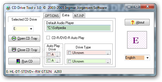 CD DRIVE TOOL is a free software by Ingmar Jorgensen and works on Windows 10, Windows 8.1, Windows 8, Windows 7, Windows XP, Windows 2000, Windows 2003, Windows 2008, Windows Vista, Windows 2012.