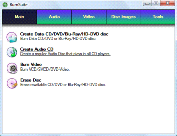 Burn Suite is a is a Free software for all your CD, DVD, Blu-Ray, HD DVD burning needs. It lets you create and record Discs of Any Kind from Audio CD to High-Definition Video. This new burner software supports all current optical disc formats - from legacy Audio CD to brand-new Blu-Ray and HD-DVD disks. Of course, you can burn a data CD, a single or double-layer DVD video or data disc just as easily! BurnSuite works with all CD, DVD and HD burning hardware with no issues. Key features: Burn Data CD, DVD, Blu-Ray, HD DVD in just a few clicks; Easy creation of music CDs and sophisticated multimedia compilations; Create video discs playable on your home DVD player; Extract ("rip") music from your audio CDs; Create disc images from discs or files (can be used for copying discs); Erase rewritable disc; Supports all available CD / DVD / Blu-ray / HD DVD burners; Free for home and commercial use.