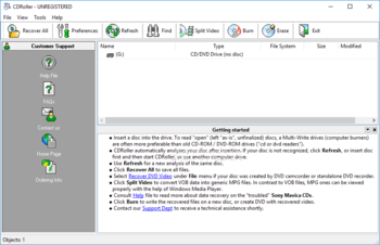 Includes a built-in CD/DVD/BD data burner. There is no need to run third-party CD/DVD/BD mastering software if you wish to burn a new DVD-video disc or backup your files and folders immediately after recovery. The "Burn" option is integrated into a common shell. Just write a new disc with recovered data shortly, without leaving CDRoller!