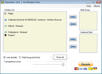 Chameleon is a simple but useful tool whihc allows users to quickly hide custom groups of programs and to make any window on your computer transparent!