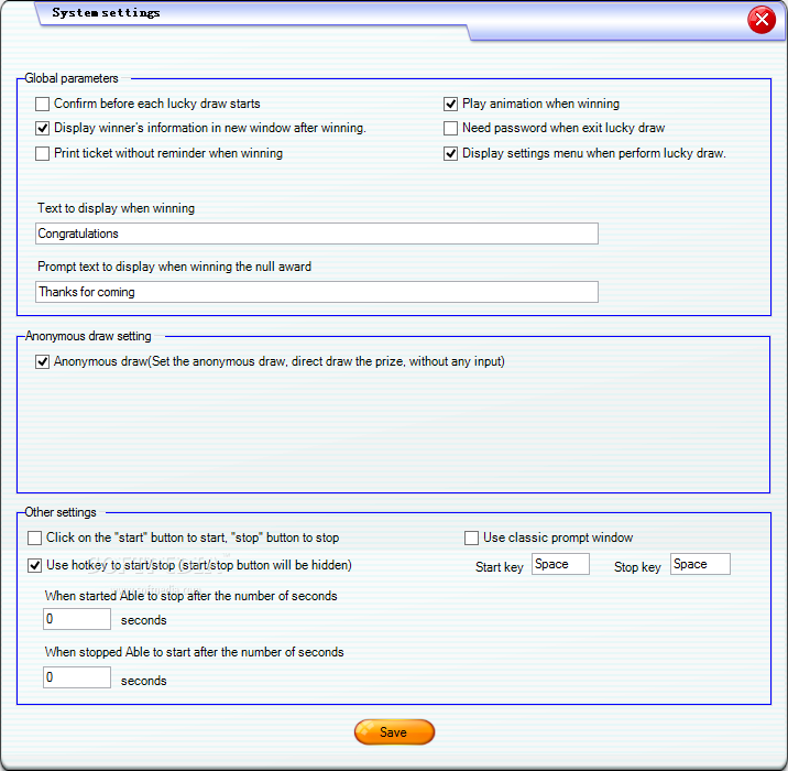 The application enables you to change the name of the lucky draw, set the background music and the winning sound alert. Aside from the audio notification, it can be set to play an animation when a prize is awarded and show a custom text message.