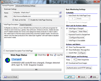 Ability to check web-pages for updates or changes, manually or automatically by individual schedule