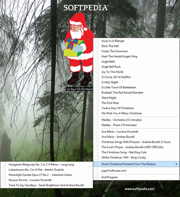 Following a short installation process, you will be acquainted with the application, which displays a Santa figure holding a present and showing a countdown (in days) until Christmas.