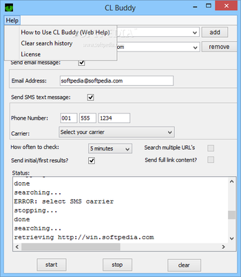 CL Buddy is a simple and reliable application for monitoring new replies and posts submitted on specific websites, in order to instantly notify you via e-mail or text message.