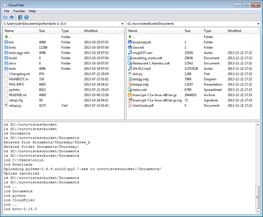 Cloud Filer is a graphical cloud storage management tool. Cloud Filer allows you to upload and download files to cloud storage and can be used as part of your backup strategy. Cloud Filer includes pre-internet encryption and file name obfuscation making access to your cloud data useless without the right password.