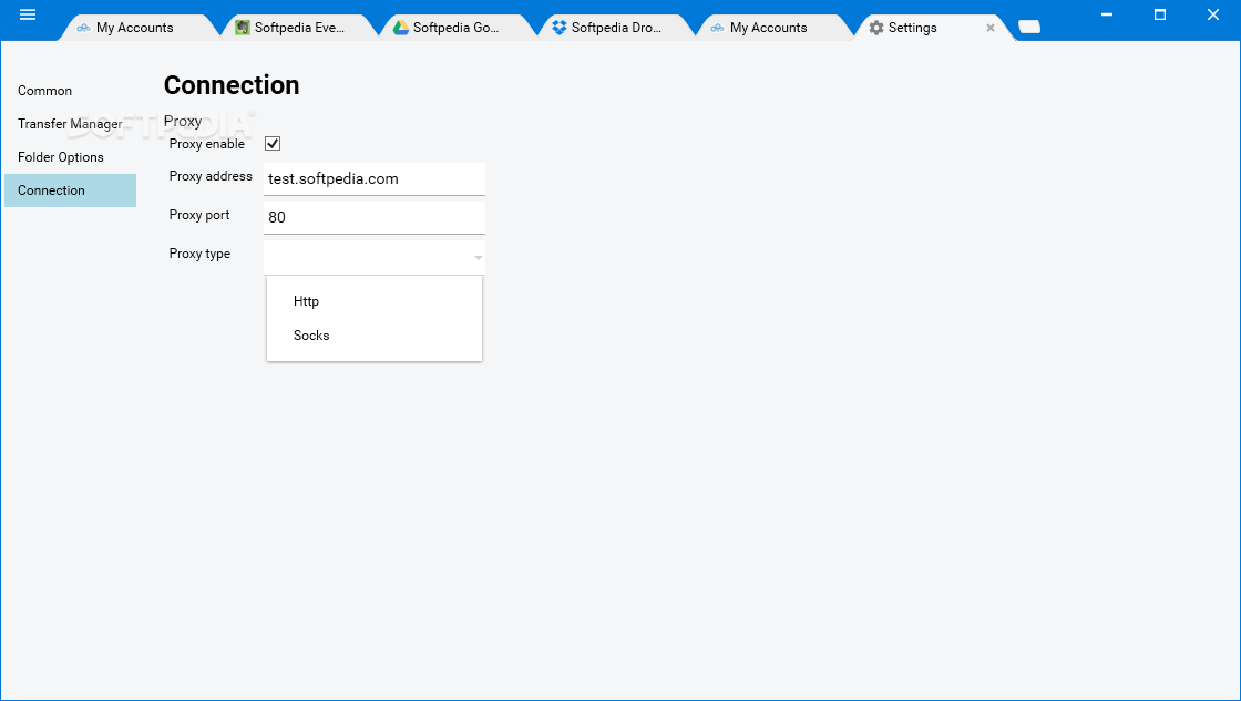 Among the services supported by CloudBuckit, we can mention Dropbox, Google Drive, OneDrive, Amazon Cloud Drive, Evernote, Flickr and MEGA. Of course, the program also allows you to connect to FTP servers.